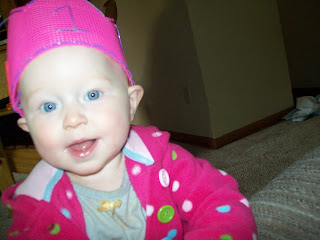 She is also trying really hard to talk lately. She's in the stage where if you know her and see her a lot (or are her mom :)) then you can understand quite a few things, but they aren't really clear words yet. Her latest word is shoes. She has decided that she is always supposed to have shoes on. I guess it just took finding the right ones, because I have never been able to keep any shoes or socks for that matter on her before. I got her some sandals and some tennis shoes and she thinks something is wrong if she doesn't have one of them on. The other day she fell asleep before she got jammies on so she was asleep in her clothes and shoes. When she woke up in the middle of the night, when I was calming her down, I took her shoes off and she got really mad at me. Crazy girl!